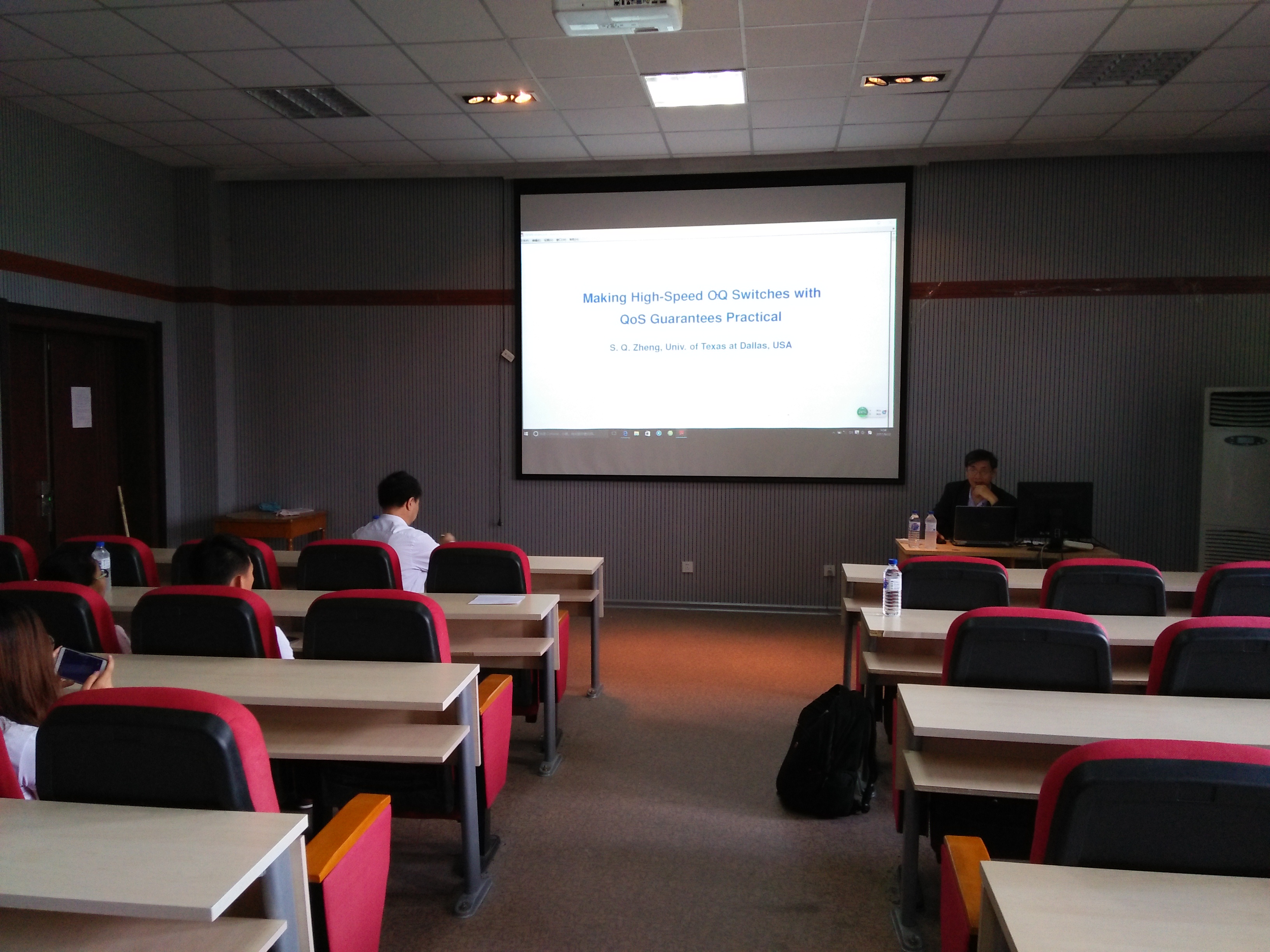 2017年6月22日,郑斯清教授在伟德国际计算机公司做了题为“Output-queued switch with performance guarantees”的学术报告。郑斯清教授是美国德州大学达拉斯分校终身教授,伟德国际唐敖庆讲座教授,曾经担任过Bononza、Alcatel等多家公司顾问、多个国际著名期刊的特约主编和IEEE并行和分布式系统学报编委。在IEEE Transactions on Computers,IEEE Transactions on Communications,IEEE Transactions on Parallel and Distributed System, IEEE Infocom等国际权威期刊和会议上发表了260多篇高水平学术论文,著书8部,专利16项,承担了美国自然科学基金项目等20余项。