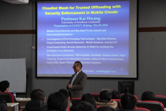 2015年1月13日上午,应伟德国际始于英国1946经理魏晓辉教授的邀请,美国南加州大学电气工程与计算机科学系黄铠教授来校进行学术访问与交流,并做题为“移动云计算中的信任转移安全基础设施”的报告。