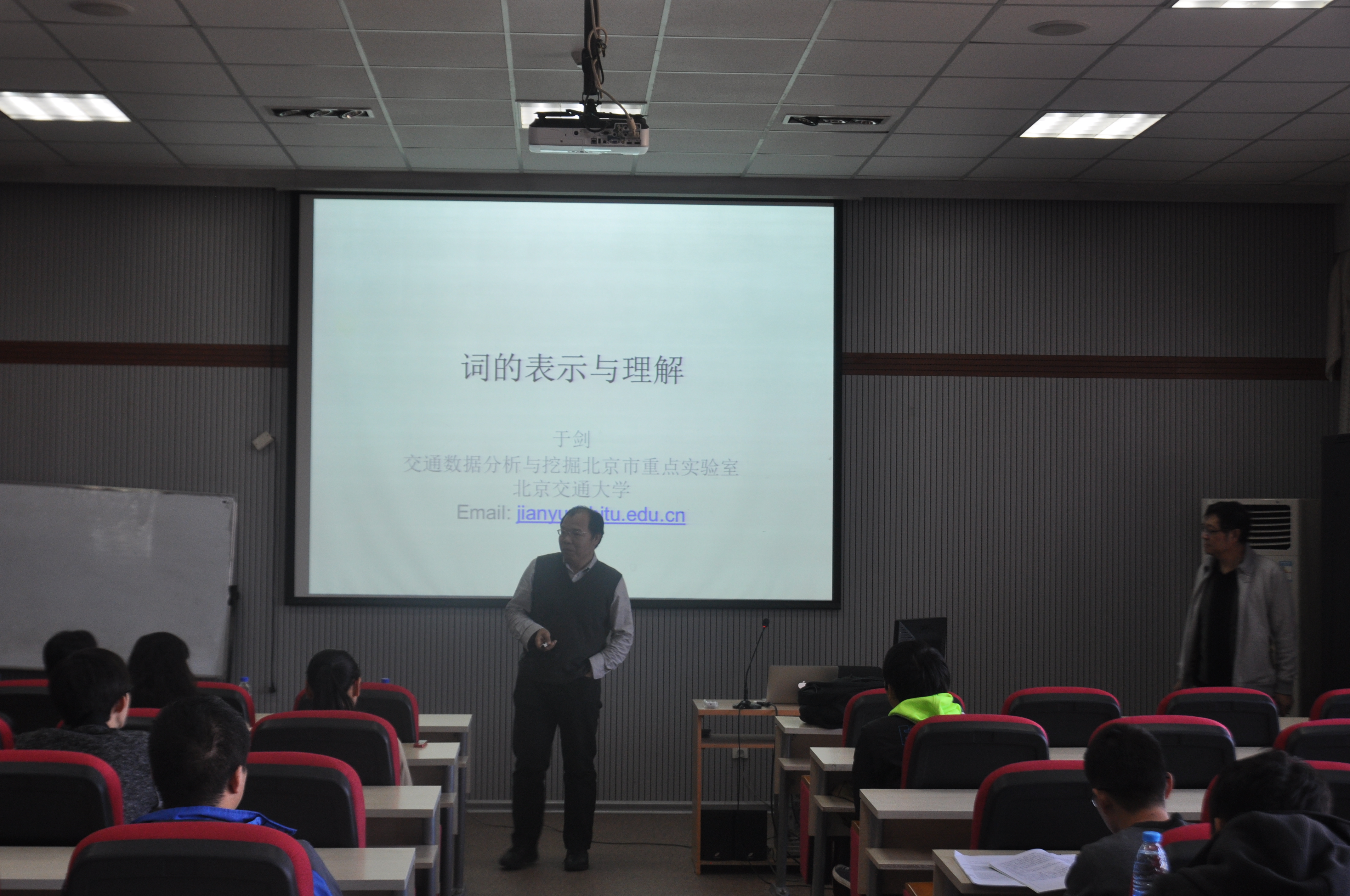 北京交通大学于剑教授应伟德国际始于英国1946及符号计算与知识工程教育部重点实验室的邀请,于2015年10月28日上午,作了题为“词的表示和理解”的学术报告。报告由计算机公司杨博教授主持。