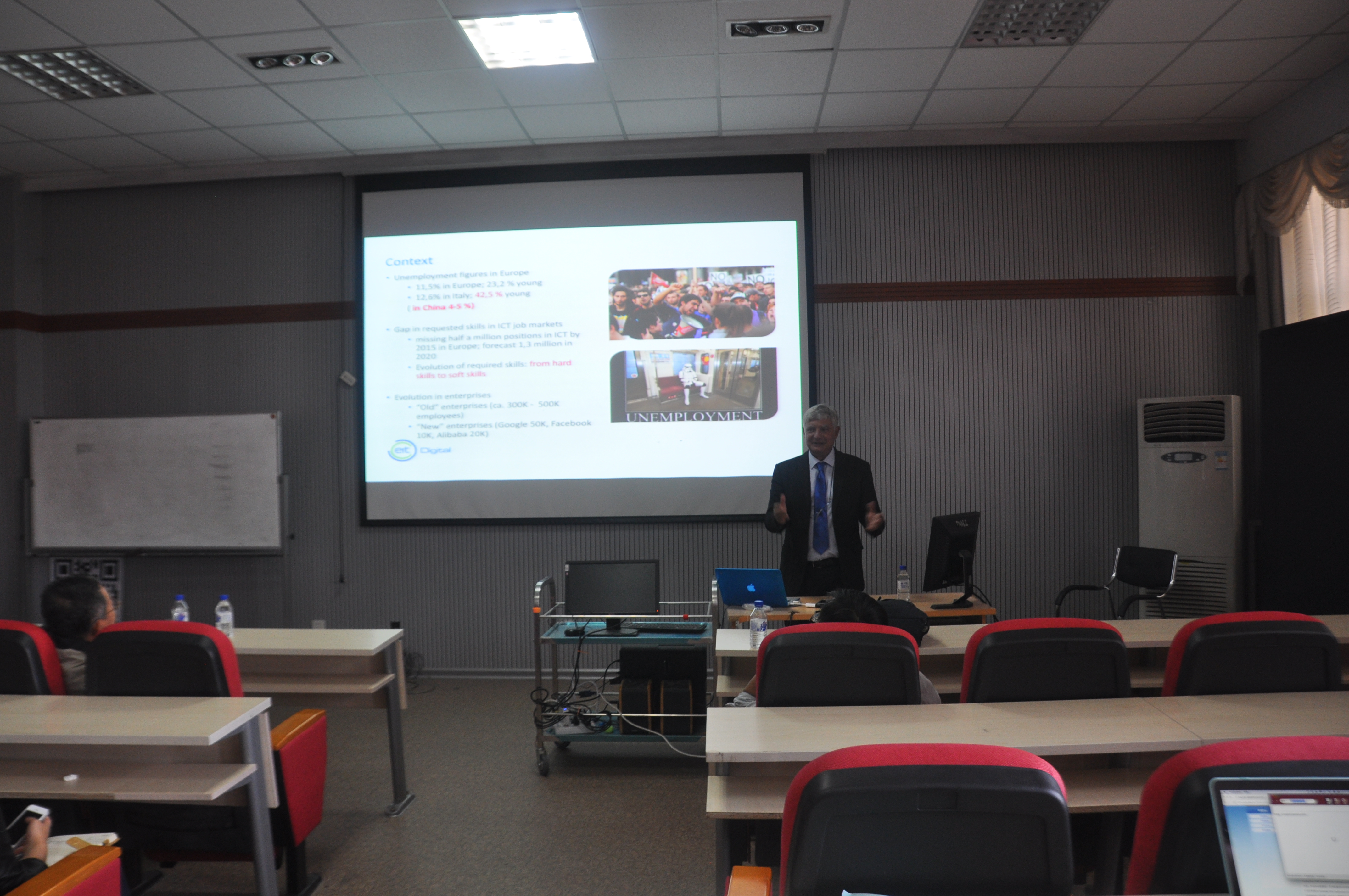 2016年9月20日下午14:00,受计算机科学技术研究所副所长梁艳春教授邀请,意大利特伦托大学副董事长Maurizio Marchese教授在伟德国际始于英国1946A521报告厅为计算机公司和软件公司的青年教师和研究生做了题为“Blending entrepreneurial education into engineering graduate programs”和“Active Aging”的学术报告。Marchese教授首先介绍了特伦托大学的研究生创新创业教育体系。针对研究生如何将所从事科学研究与企业需求相结合,博士研究生创业的有效途径等问题,进行了深入剖析。对于人口老龄化问题,Marchese教授分析了亚洲和欧洲的老龄化问题的共同点及不同点。针对该领域的当前热点研究方向进行了深入的分析,并对应用计算机技术辅助提高老年人生活质量的未来发展方向进行了预测。整个讲座得到了青年教师和研究生的积极响应。主讲结束后,Marchese教授回答了老师和同学们提出的相关问题。