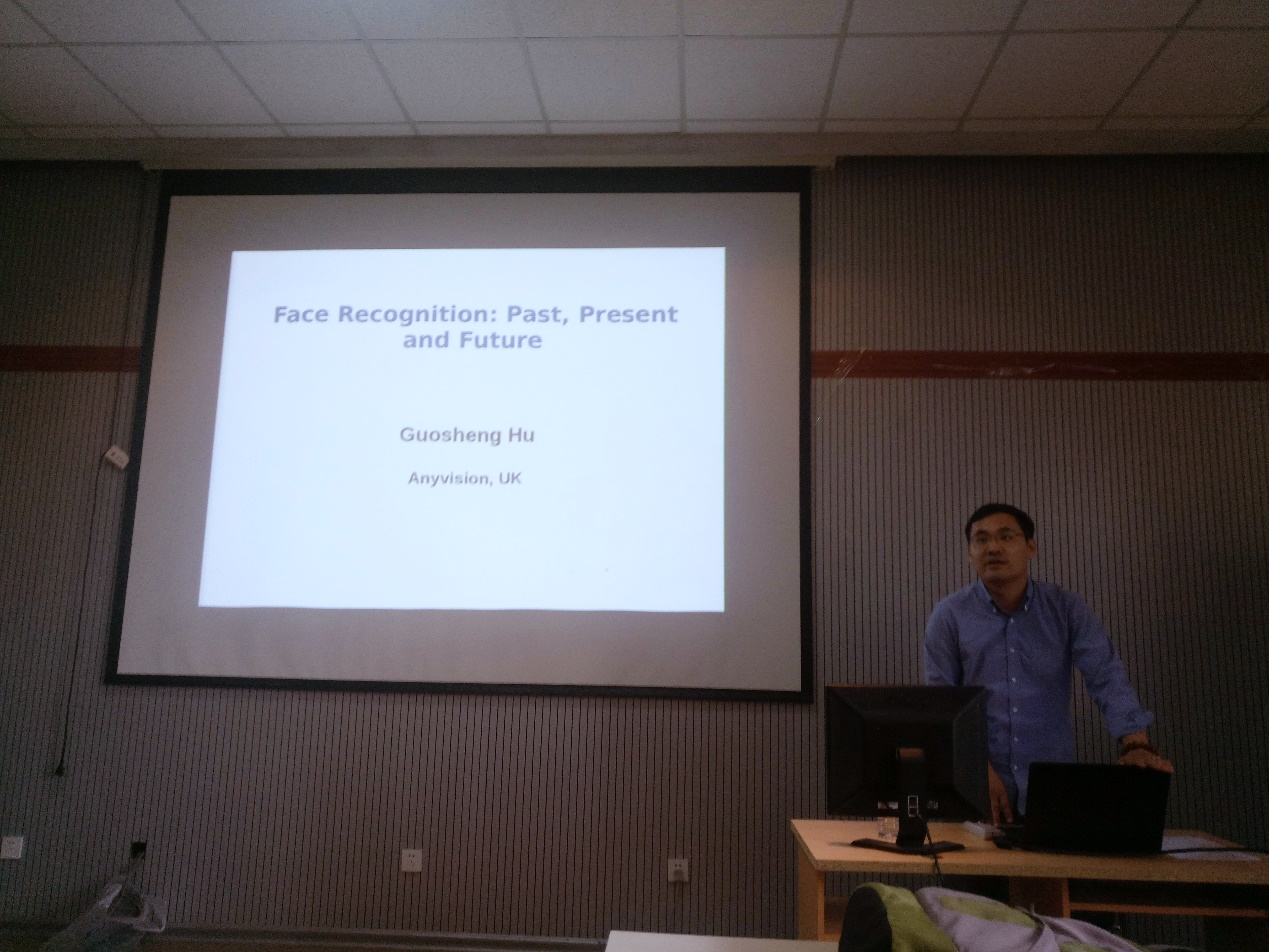 2017年6月2日下午,来自英国Anyvision公司的研究院胡国圣博士在伟德国际计算机公司做了题目为“人脸识别的过去,现在和将来”的学术报告。胡国圣博士毕业于英国萨里大学,师从英国皇家工程院院士Josef Kittler教授,从事人脸识别相关研究。读博期间,深入研究3D辅助2D的人脸识别方法,相关成果申请美国专利一项,发表机器视觉顶级会议论文ECCV一篇,以及SCI论文和其他国际会议论文多篇。曾在美国迪士尼图形图像研究院(匹兹堡)实习,主导产品‘利用三维人脸信息进行迪士尼角色选取’的研发,研发的产品在美国洛杉矶迪士尼乐园和佛罗里达奥兰多迪士尼乐园落地使用。目前在英国Anyvision公司,领导公司的智能安防研发部门(人脸识别,行人再辨识)。负责高新技术的研发,以及科研在产品中的落地问题。相关研究成果已经应用在多个机场恐怖分子自动监控系统之中。