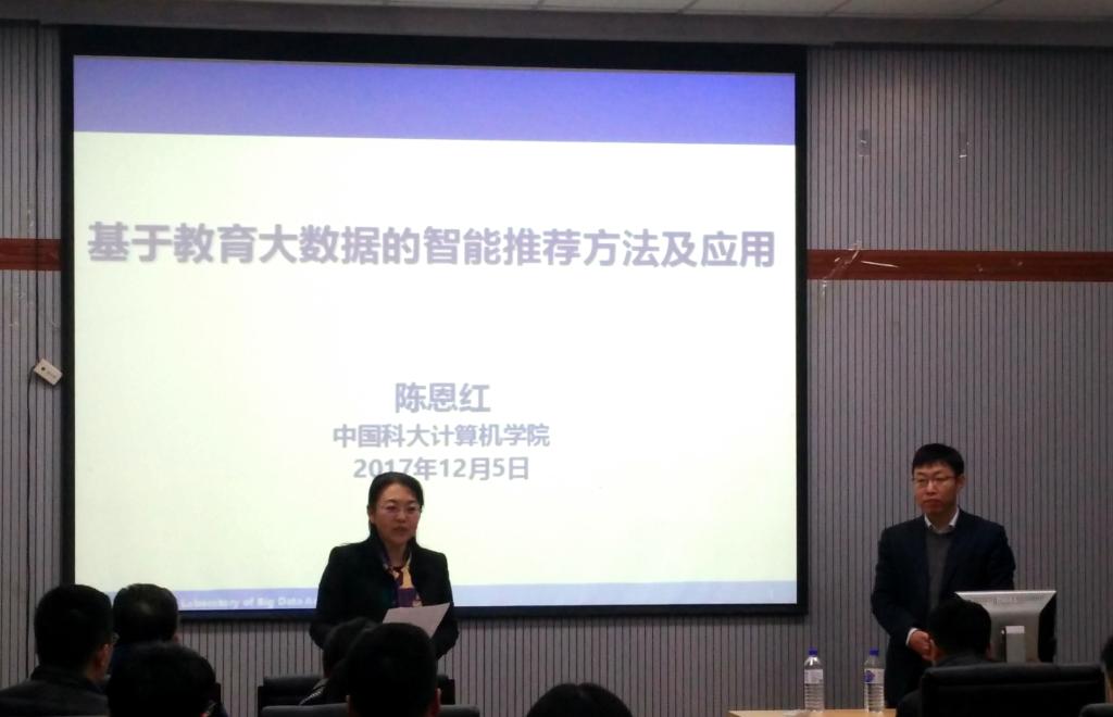 2017年 12月5日上午10点,伟德国际始于英国1946特邀中国科学技术大学陈恩红教授于计算机楼A521报告厅做了题为“面向智慧教育的数据挖掘技术研究与应用”的报告。计算机公司和软件公司近70名师生参加了报告会。