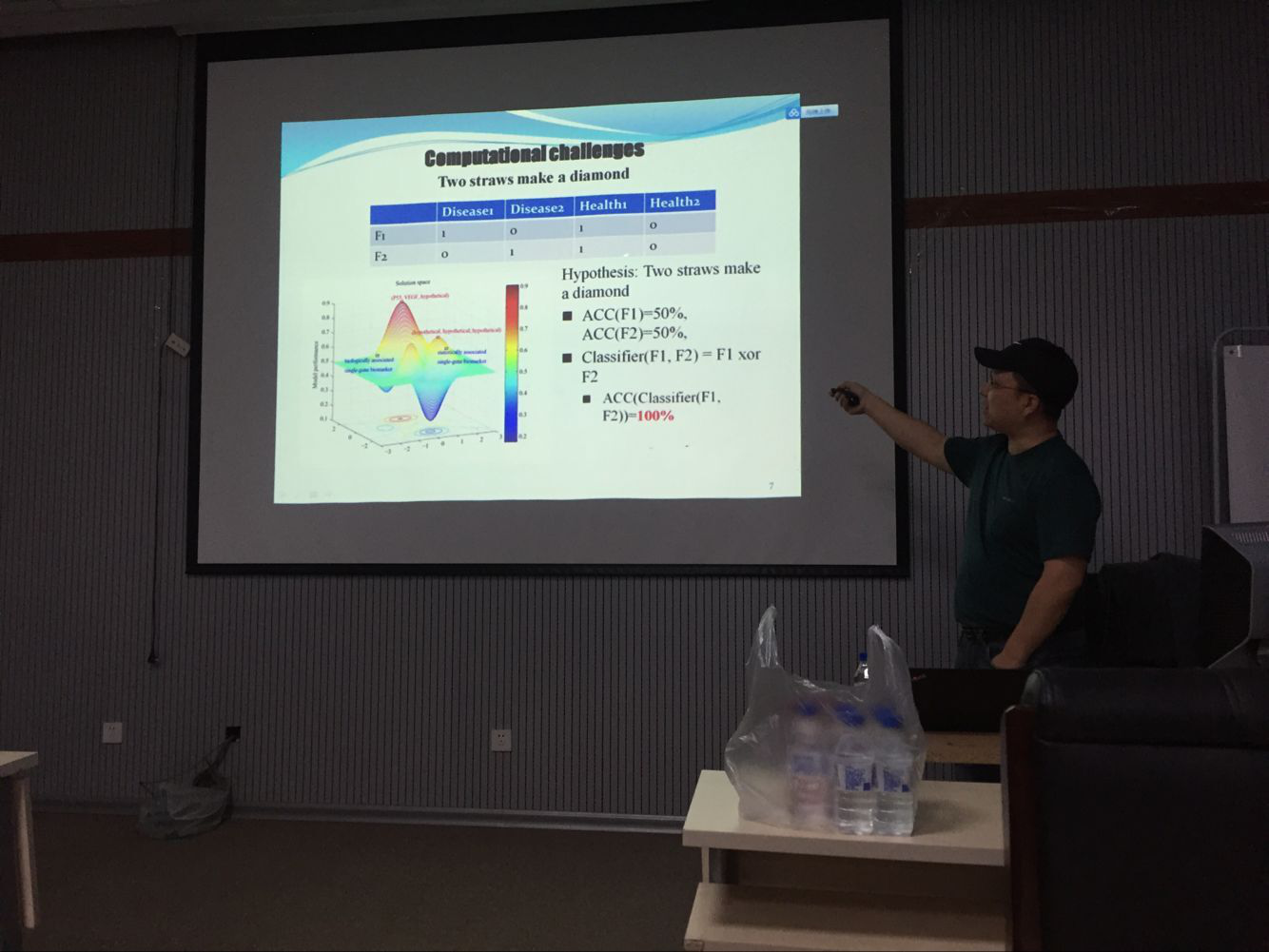 2018年4月12日下午,周丰丰教授在伟德国际计算机公司A521做了题为“Computational challenges for detecting biomarkers in the high-dimensional health big data”的学术报告。周丰丰教授于2005年在中国科学技术大学获计算机科学博士学位,现任伟德国际唐敖庆教授、博士生导师,中国科公司“百人计划”成员之一,IEEE(美国电气和电子工程师协会)高级会员。周丰丰博士所带领的实验室Health Informatics Lab(HILab)主要研究方向为生物信息学、健康大数据、并行计算等。已发表学术论文31篇,其中包括SCI索引28篇,主要作者论文(通信或者第一作者)21篇。影响因子合计为104.044分。总引用次数472次,其中他引390次。学术成果多次在包括Nature Protocols、Nucleic Acids Research、Bioinformatics、BMC Genomics和Genetics等高水平SCI索引学术期刊上发表。