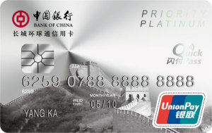 中国银行长城环球通白金信用卡是面向成功精英人士特邀发行的白金信用卡,其中长城环球通银联白金信用卡还是首款符合中国银联PBOC2.0芯片标准的白金信用卡。除具有存款有息、循环信用、分期付款等金融功能外,中国银行还特为尊贵的您提供了全面高额保险、境外消费多倍积分等专属权益,以及积分兑换机场贵宾厅服务、高尔夫球礼遇、医疗健康保障、道路救援等贵宾服务。
