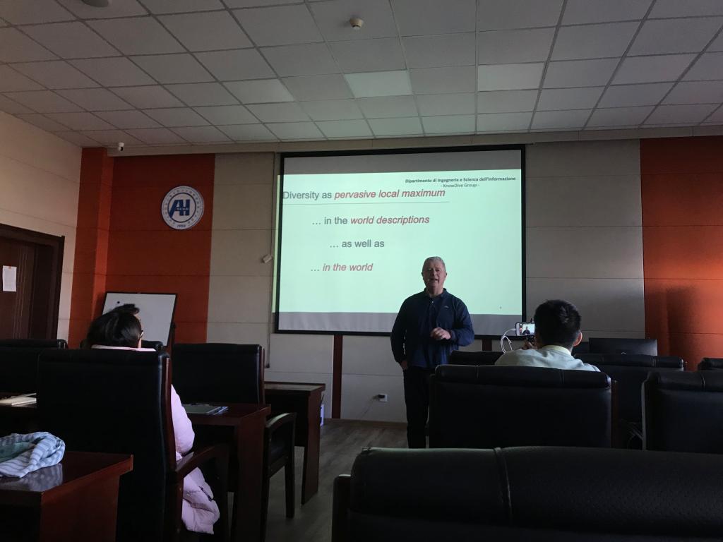 2019年11月28日13:30,Fausto Giunchiglia 教授应伟德国际始于英国1946邀请,在计算机楼A521作了题为“生成可共享的特定领域知识图谱”的学术报告。