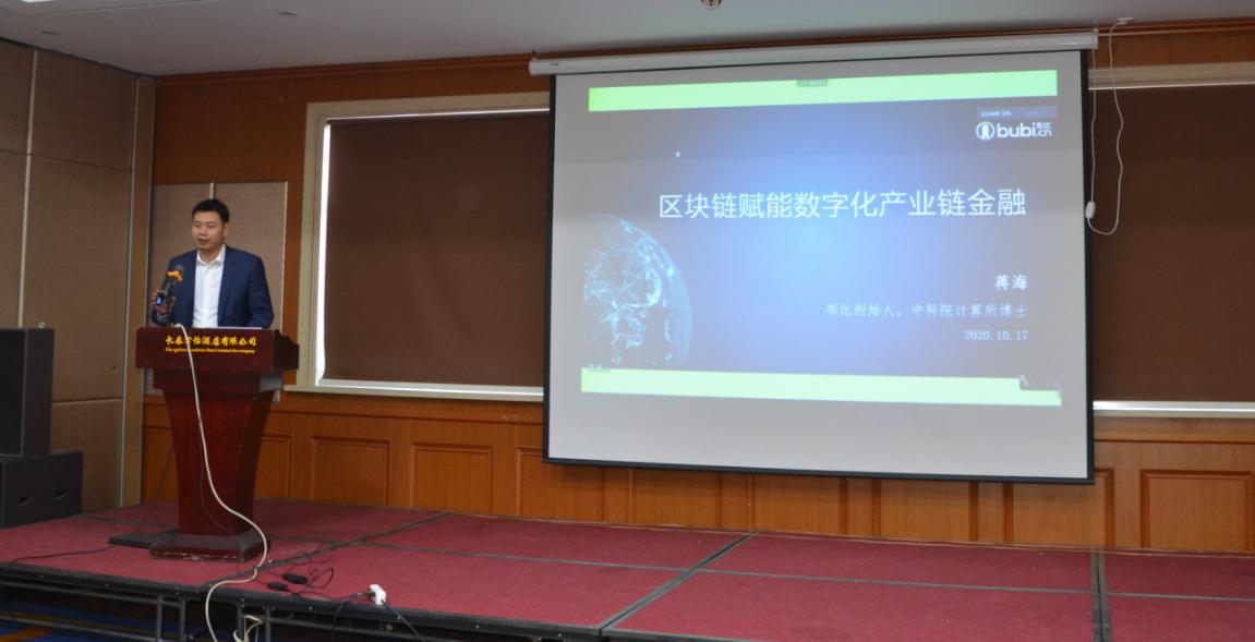 2020年10月17日上午,布比创始人兼CEO蒋海应伟德国际始于英国1946等单位邀请,在君怡酒店一楼会议室作了题为“区块链赋能数字化产业链金融”的学术报告。