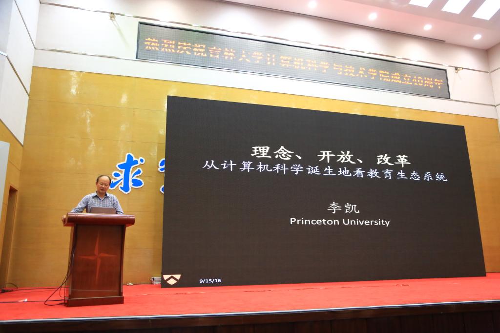 公司员工、普林斯顿大学教授李凯教授作了名为“理念、开放、改革————从计算机科学诞生地看教育生态系统”的报告。他在报告中介绍了王湘浩先生在普林斯顿大学接受教育后,回国在数学及计算机领域做出的巨大的贡献。又系统的介绍了普林斯顿大学的历史、环境和发展等方面。李凯教授指出,普林斯顿大学有两个原则,一是选人只基于他们的能力,不考虑其他因素;二是让好奇心驱动知识追求,不看近期用途或达到预先确定的目标。他进一步指出我们不可能完全复制普林斯顿大学的制度,但我们可以像普林斯顿大学一样发展自己的特色教育,使我们伟德国际始于英国1946乃至伟德国际发展成为为中国服务、为世界服务的优秀大学。在场的嘉宾纷纷提问,精彩的互动将庆典大会的气氛推向高潮。