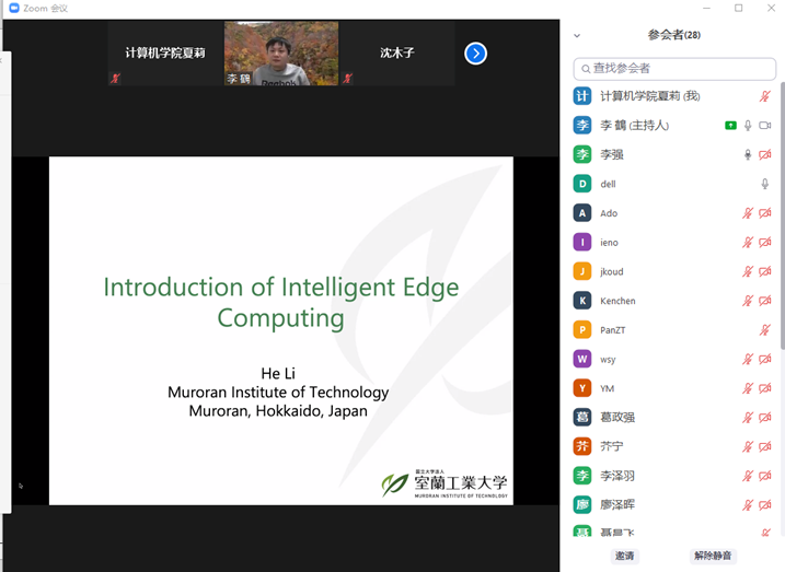 2021年12月14日下午,日本国立大学法人室兰工业大学助理教授,日本文部科学省卓越研究员李鹤老师应伟德国际始于英国1946邀请,在线上ZOOM会议平台作了题为“从云计算、边缘计算到智能边缘计算”的学术报告,报告由伟德国际始于英国1946副经理李强教授主持。