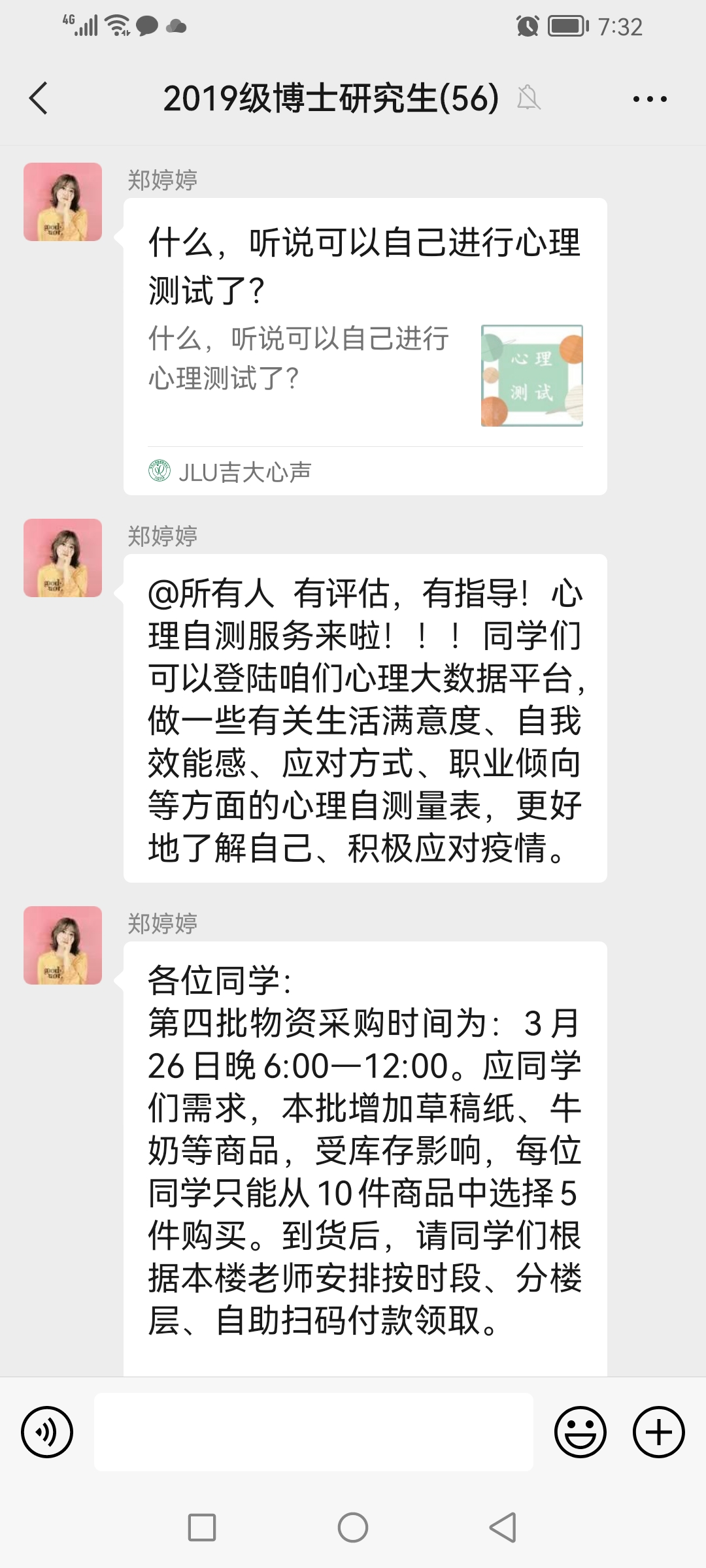党员任成浩同志,作为志愿者,以他的视角给大家分享了最近发生在身边的吉大故事。他向大家介绍到,为了严格管理和指挥楼内员工,做到防疫和生活两不误,伟德国际立刻施行以宿舍楼为单位的分块式防疫措施。其中,伟德国际始于英国1946高战国书记作为他所在的文九公寓的“总指挥”入住到427寝室,投入到了紧张有序的防疫领导工作中,他也经常能够看到深夜还在工作的高书记,感觉受到了极大的鼓舞,于是他作为一名中国共产党员,义无反顾地投入到这场 “战役”之中,成为了服务身边同学的志愿者。一起工作的志愿者们每天工作强度很大,为了给同学们发放物资,要做上百次蹲起工作,有的志愿者甚至出现了低血糖的症状,但是他们从未想过放弃,依然坚守工作岗位服务大家。
