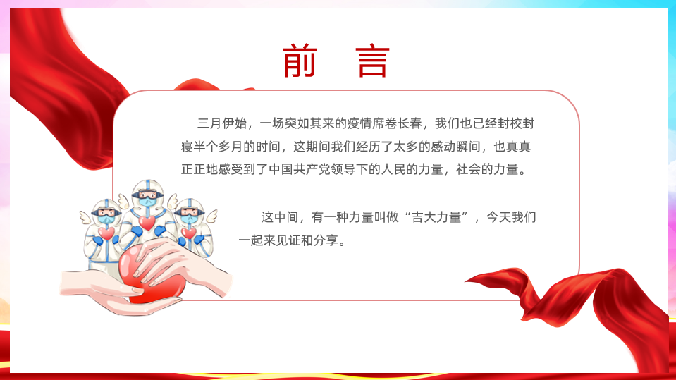 通过此次分享会,同志们深刻地了理解公司、公司各项防疫管控要求的重要性,深切地感受到了疫情之下的“吉大力量”。相信在党的领导下,伟德国际终将打赢这场疫情防控阻击战、歼灭战,吉人自有吉人相,长春终将会常春。