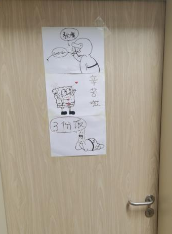 志愿者吴严了解到同学们每日每餐的需求不同,建议同学们将每餐需求量贴在门口,大大减少了配餐的时间,便利了同学们的生活,保证了餐数适当,不浪费。