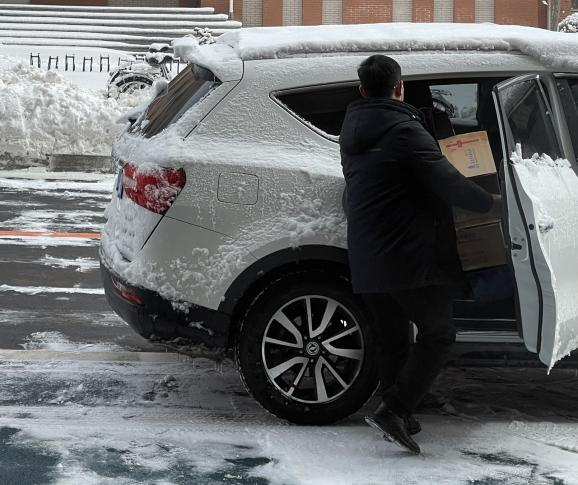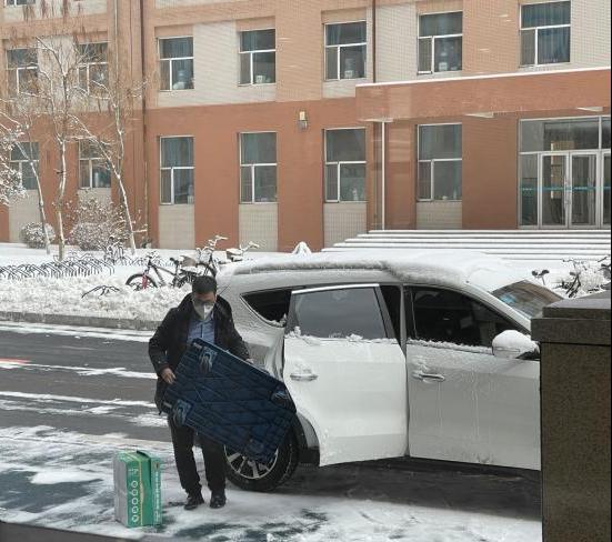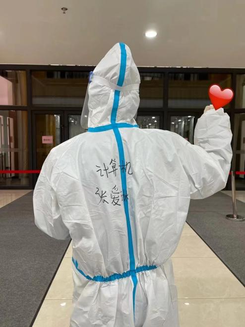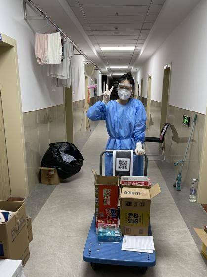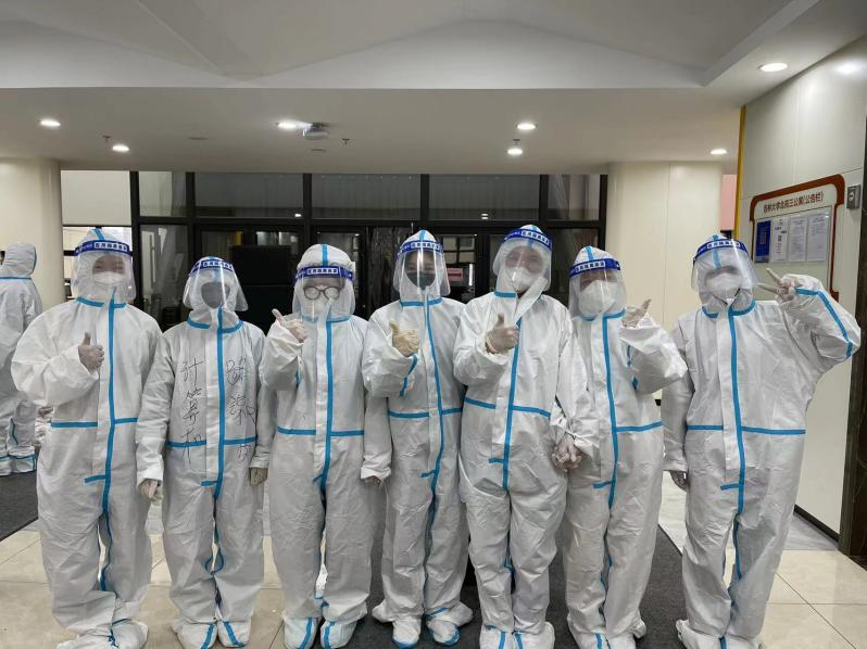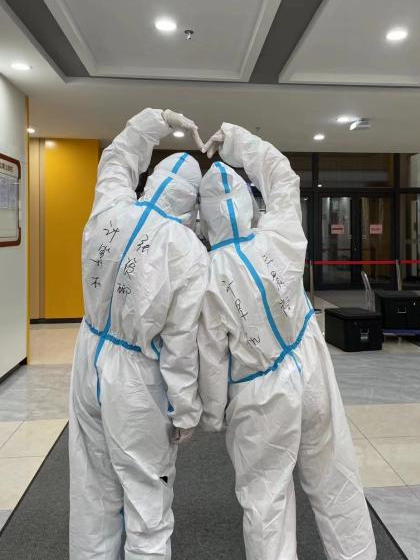 当志愿者们穿上防护服,北三公寓志愿者队的张爱琳感慨:“那是我们第⼀次感受防护服里的世界,脱下来的时候每个人都湿了头发,但大家依然开心能够贡献自己的⼀份力量”。公司高战国副书记与何老师亲赴一线,为同学们送来防疫物资,解决了送物资难,缺物资急的燃眉之急。