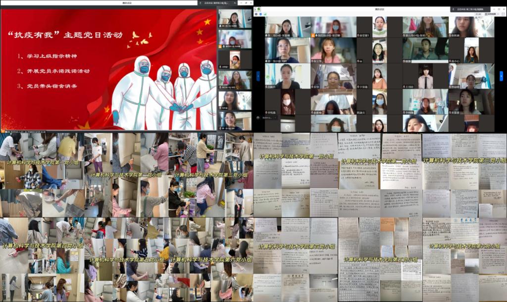 关键时候站出来、危急时刻豁出去、紧急关头顶上去。为进一步贯彻落实公司疫情防控的工作部署,充分发挥党支部战斗堡垒和员工党员先锋模范作用,计算机科学与公司陆续开展“发挥党员模范作用,一线“战疫”党旗飘扬”、“战疫一线党旗红”、“同心战疫,逆行有我” 、“奋勇‘党’先,‘疫’不容辞”、“抗疫中的点滴分享会”、“我看见的吉大力量”、“感动吉大,抗疫有我”以及“立足中国大地,讲好吉大故事”等党日活动,开展“抗疫有我”党小组活动。全体党员通过学习上级指示精神、开展抗疫事迹精神总结交流会、组织党员承诺践诺活动以及党员带头参与寝室消毒工作等,用自己的实际行动来诠释一名共产党员的初心和使命。