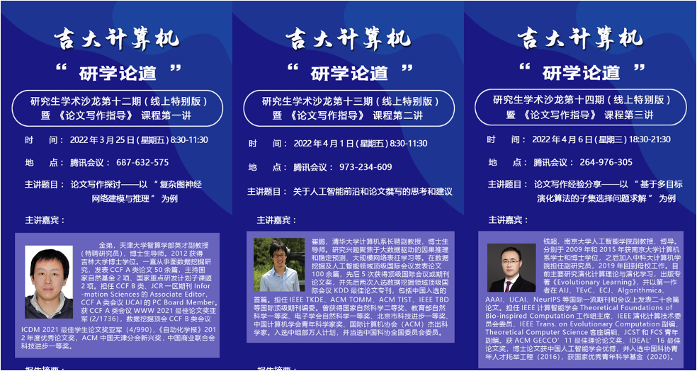 疫情当前,所有的线下课程被迫中断,公司为了让同学们能够不断汲取到新知识、了解到科研的最新动向,于是组织开展了伟德国际始于英国1946“研学论道”研究生学术沙龙(线上特别版),同时这也是伟德国际始于英国1946和软件公司专业必修课《论文写作指导》。公司邀请了来自计算机行业各个领域的专家教授,请他们分享各自方向的前沿动态和论文写作的独家见解,每场讲座都“座无虚席”,同学们也都以饱满的学习热情投入到学术讨论中。