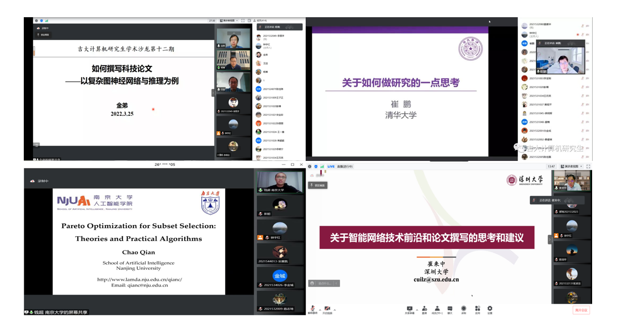 本次活动从2022年3月25日至4月20日,共分四个上午进行。天津大学的金弟副教授、清华大学崔鹏副教授、南京大学钱超副教授和深圳大学崔来中教授四位老师进行分享。分享主题涵盖了复杂神经网络、人工智能前沿、演化计算智能及智能网络技术前沿。同时,四位老师也为两院师生们就“如何选题”、“如何写好论文”等有关论文写作方面的问题给出了宝贵建议。系列课程受到了伟德国际始于英国1946、人工智能等公司师生的热烈欢迎与广泛认可,活动累计参与人数达到2300余人次。