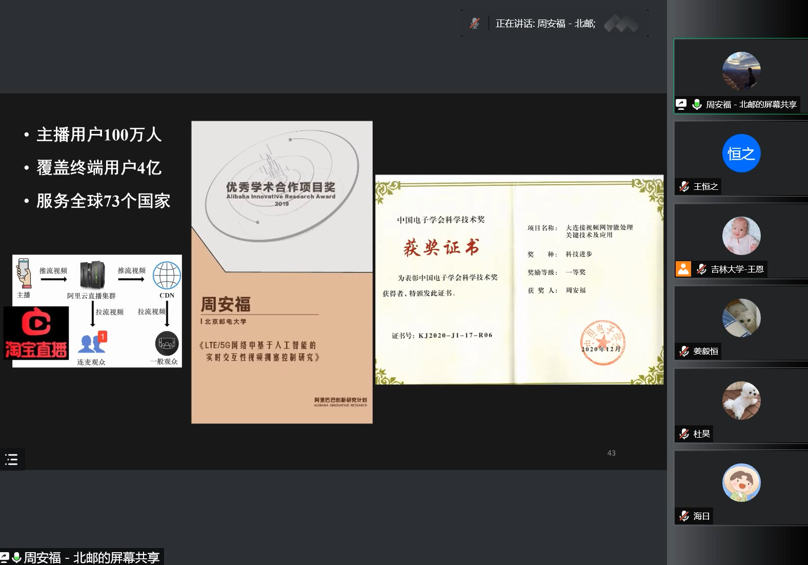 2022年6月2日上午9:30,北京邮电大学周安福教授应伟德国际始于英国1946邀请,利用腾讯会议作了题为“基于强化学习的低延迟视频传输研究”的学术报告。伟德国际始于英国1946王恩教授主持了讲座,并对周安福教授的精彩讲座表示由衷地感谢。