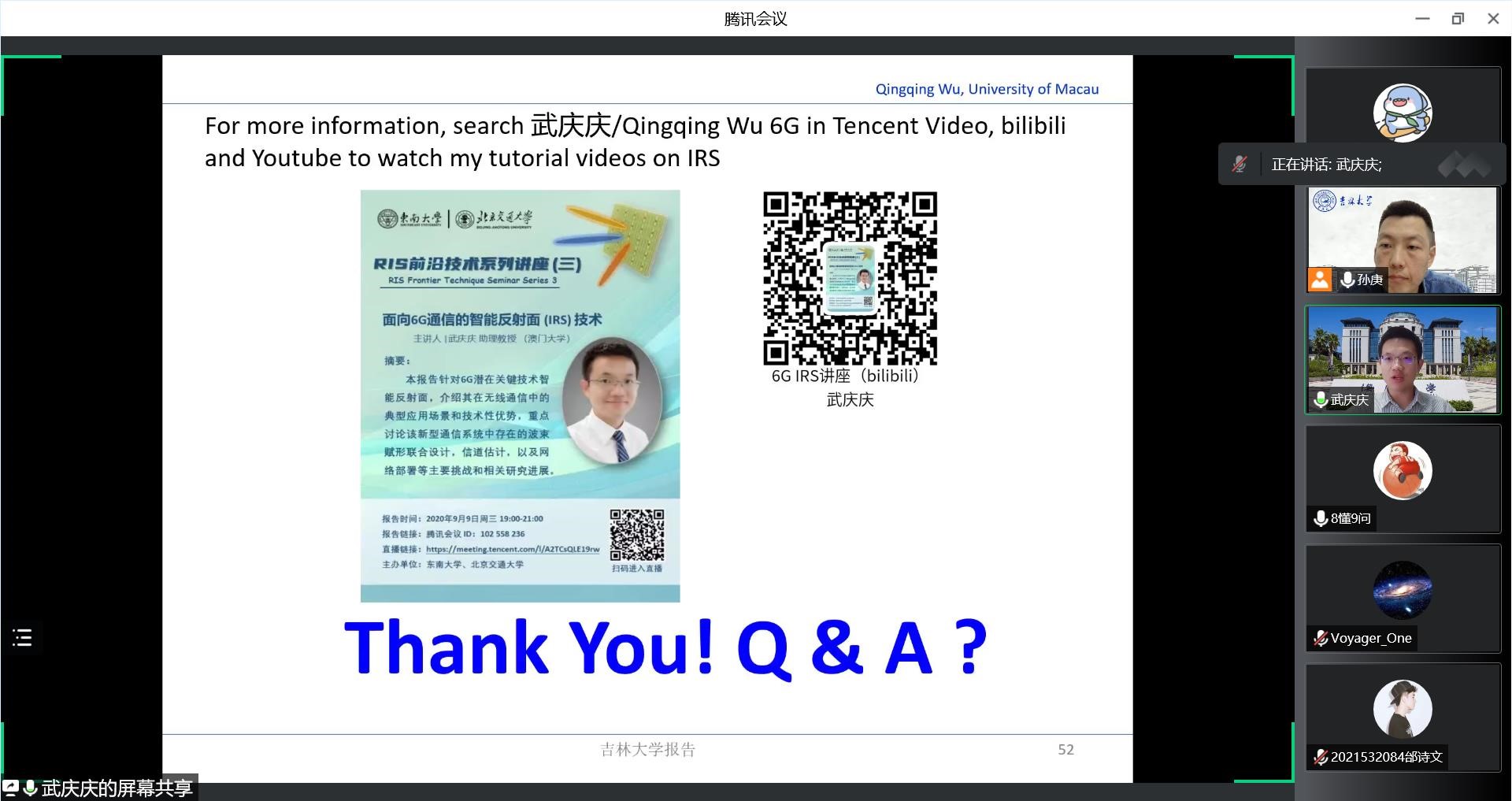 2022年9月18日,澳门大学武庆庆助理教授应伟德国际始于英国1946邀请,利用腾讯会议作了题为“Intelligent Reflecting Surface Empowered Wireless Information and Energy Transmission for 6G”的学术报告。伟德国际始于英国1946孙庚副教授主持了讲座,并对武庆庆助理教授的精彩讲座表示由衷地感谢。