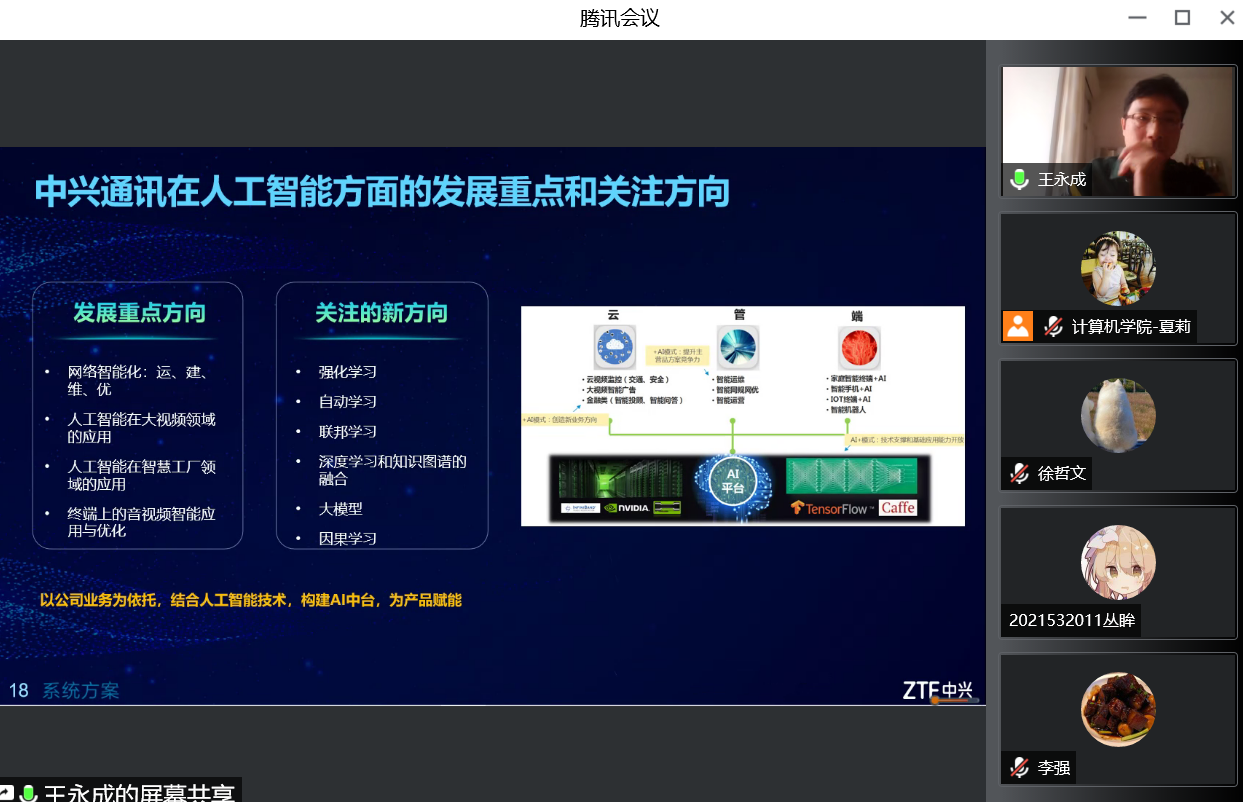 2022年11月24日,中兴通讯股份有限公司数据智能系统部部长王永成应伟德国际始于英国1946邀请,以线上腾讯会议的形式为计算机科学与技术公司的老师和同学们作了题为“人工智能技术的发展及在企业中的应用”的学术报告,伟德国际始于英国1946副经理李强教授主持了本次报告。