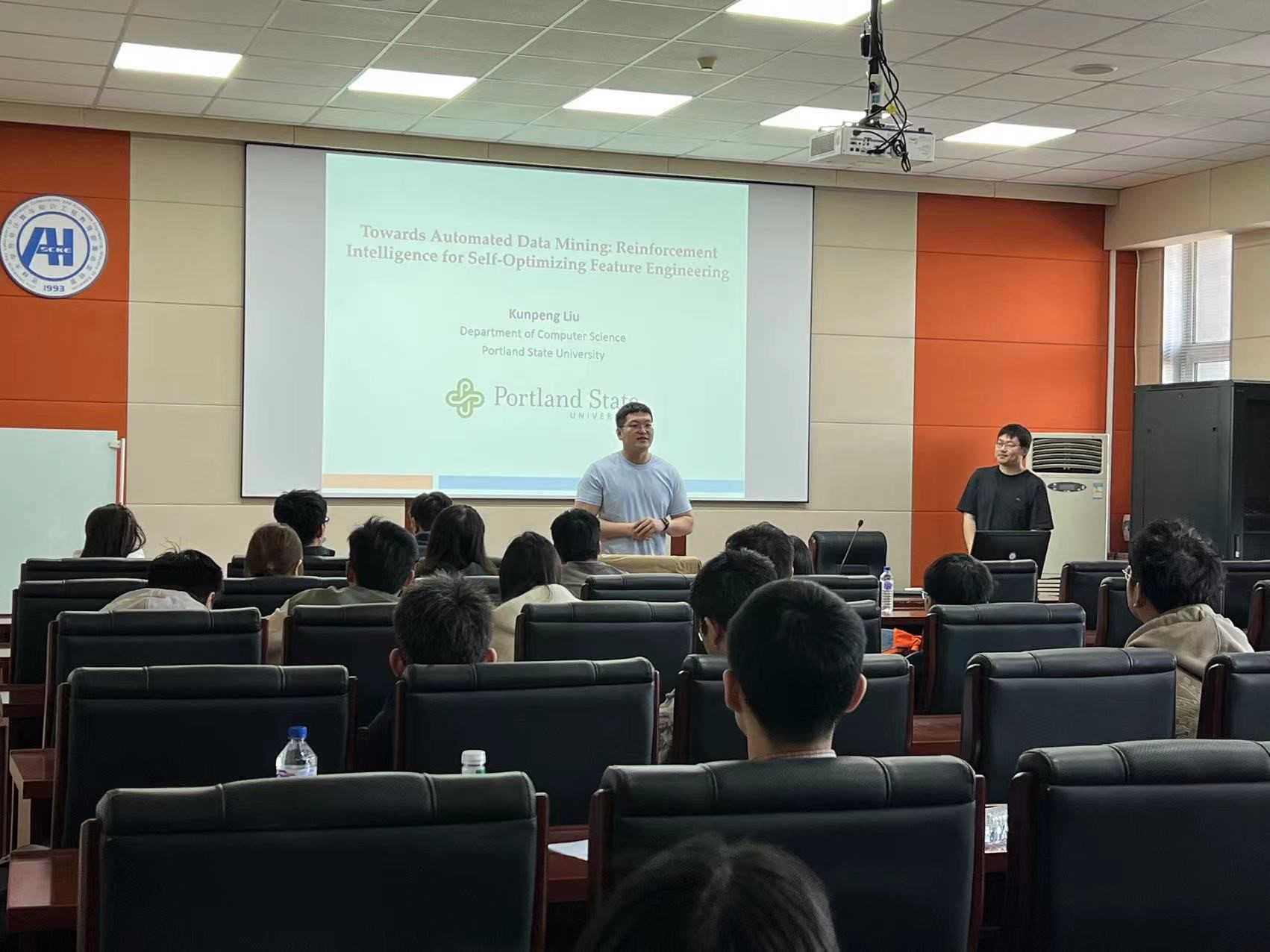 2023年4月21日,波特兰州立大学刘鲲鹏助理教授应伟德国际始于英国1946邀请,在伟德国际中心校区王湘浩楼A521作了题为“自动化特征工程:填补特征工程与自优化之间的空白”的学术报告。伟德国际始于英国1946徐原博副教授主持了讲座。