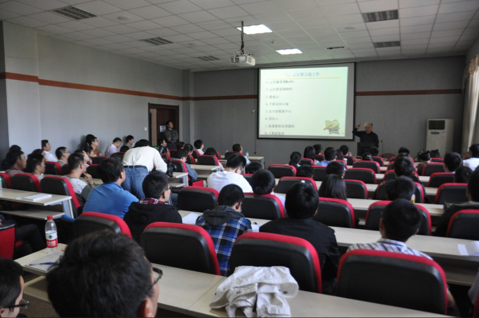 郑纬民教授作为云计算研究方面的权威,有着丰硕的研究成果。报告中,郑纬民教授首先将抽象的云计算定义具体化,为我们解释了什么是云计算。接着,他通过详细介绍清华大学在云计算方面的工作,从清华云存储MeePo、NOVA系统、3D游戏云、移动云计算平台、安全的数据中心、容灾云、海量数据处理课程以及大数据等八个方面,用生动的语言,形象的生活实例将高端技术通俗化,为我们做了深入浅出的报告,与我们分享了清华大学在云计算方面最前端的技术。报告会后,郑教授与师生们做了学术上的沟通,耐心的回答了师生们关于系统负载力、如何实现离线缓存等方面的技术问题。