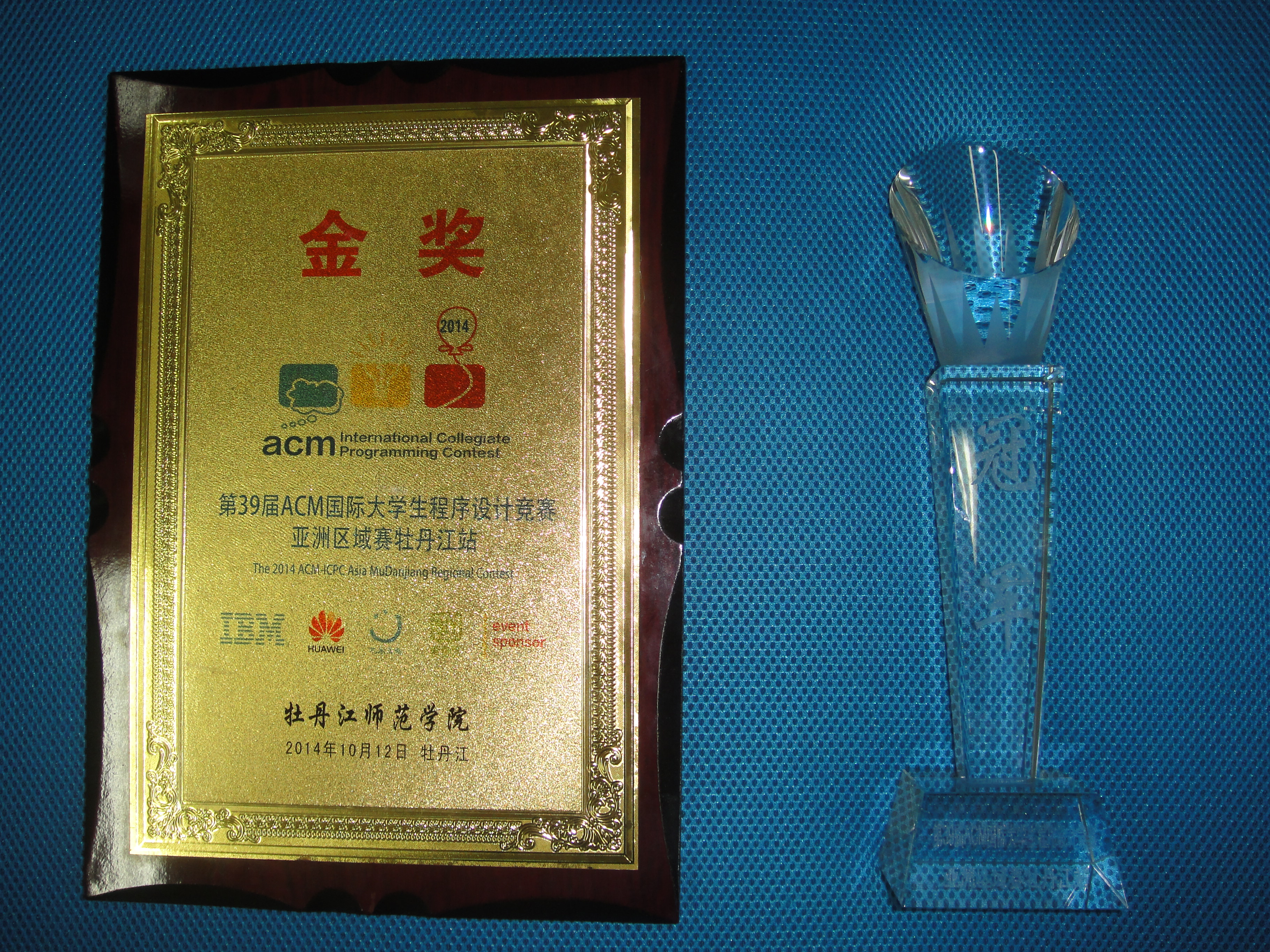 第39届ACM-ICPC国际老员工程序设计竞赛亚洲区域赛牡丹江站比赛于2014年10月11日至12日在牡丹江师范公司举行。清华大学、北京大学、复旦大学、国防科技大学、哈尔滨工业大学等91所高校的154支参赛队参加了该站的比赛。经过激烈的角逐,由公司计算机公司2013级本科生唐家铭、2012级本科生陈海敏和软件公司2012级本科生药剡组成的“天命之战”队力拔头筹,率先解出7个题目,名列第1名,获得冠军。
