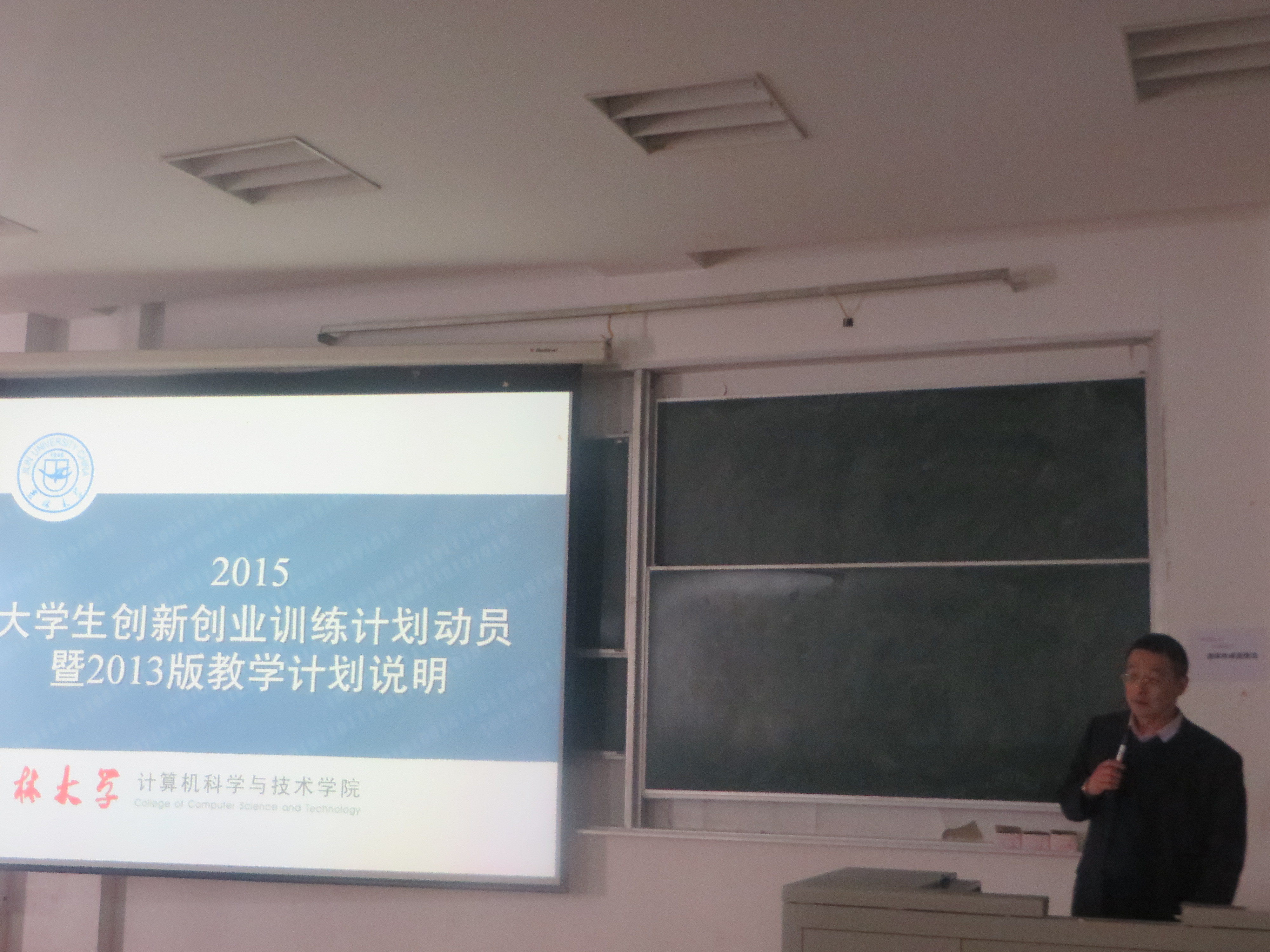 接着,赵宏伟教授对“老员工创新创业训练计划”项目申报、级别确定、考核验收以及2013版本科培养方案中的科技实践环节进行了详细的说明和解释,并在耐心地回答了员工提出的各种问题。