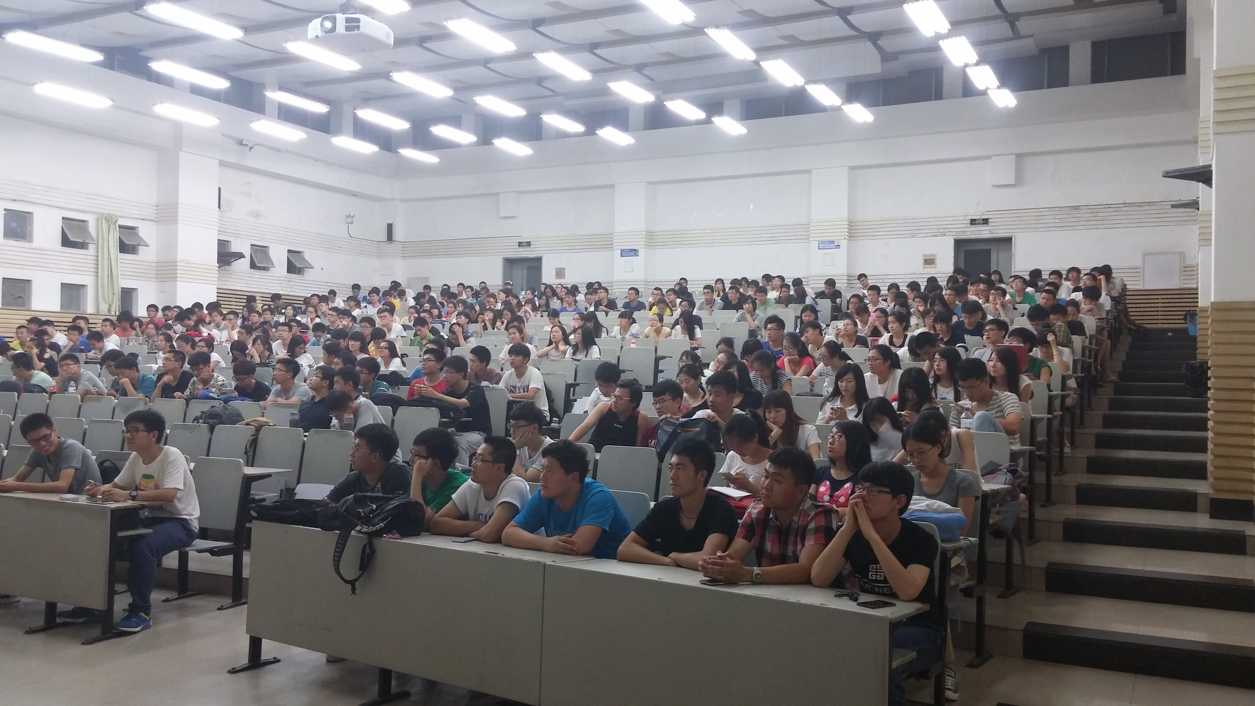 2015年6月24日晚上7点半,伟德国际始于英国1946在前卫校区逸夫教学楼第十阶梯教室举办了2013级本科生年级大会。本次年级大会的主要议题为解读2013版本科培养方案和14-15学年第二学期期末考试考风考纪教育。伟德国际始于英国1946主管教学副经理,博士生导师黄岚教授、教务办公室主任金京姬老师、2013级辅导员牛泽老师出席了会议,2013级全体员工参加了会议。