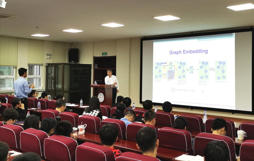 在本次报告中,许东教授先从神经网络出发,让大家了解神经网络的概貌,然后许东教授仔细讲解了residual/dense networks、inception networks、light networks、R-CNN、graph neural network和hybrid networks六种神经网络及其它们发展和改进。在报告中,对于不同的神经网络,许东教授也介绍了他们团队利用这种网络进行的研究工作,并提出了他对于这些网络及问题的看法。此外,在如何挑选论文,设计神经网络的原则等问题上,许东教授给大家分享了他的观点和经验。在报告过程中,许东教授每讲完一种神经网络,就停下来和在场的老师和同学交流,悉心回答他们提出的问题。本次报告受到了广大师生的热烈响应,将近三个小时的学术报告不仅让大家增长了见识,也让大家对神经网络的设计和应用有了进一步的了解与思考。