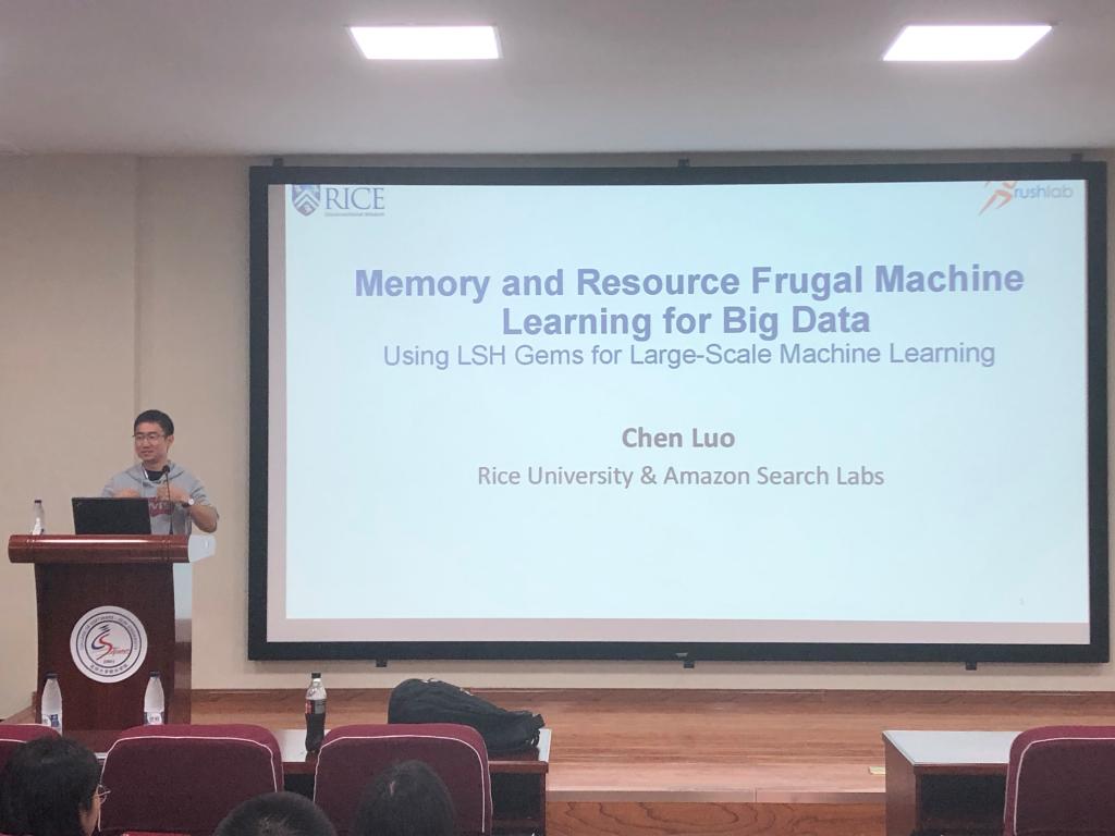 2019年8月19日上午,亚马逊搜索实验室罗琛博士应伟德国际始于英国1946邀请,在计算机楼B108作了题为“Memory and Resource Frugal Machine Learninig for Big Data”的学术报告。